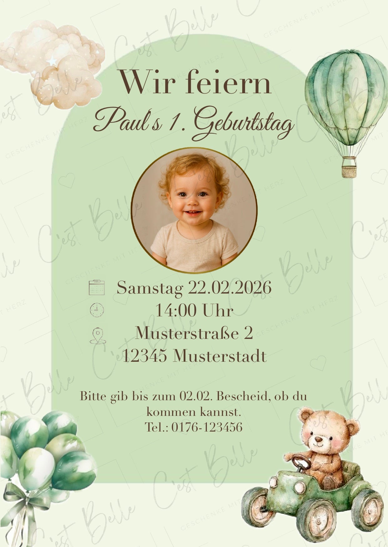 Personalisierte Geburtstagseinladung „Grün“ - digitaler Download