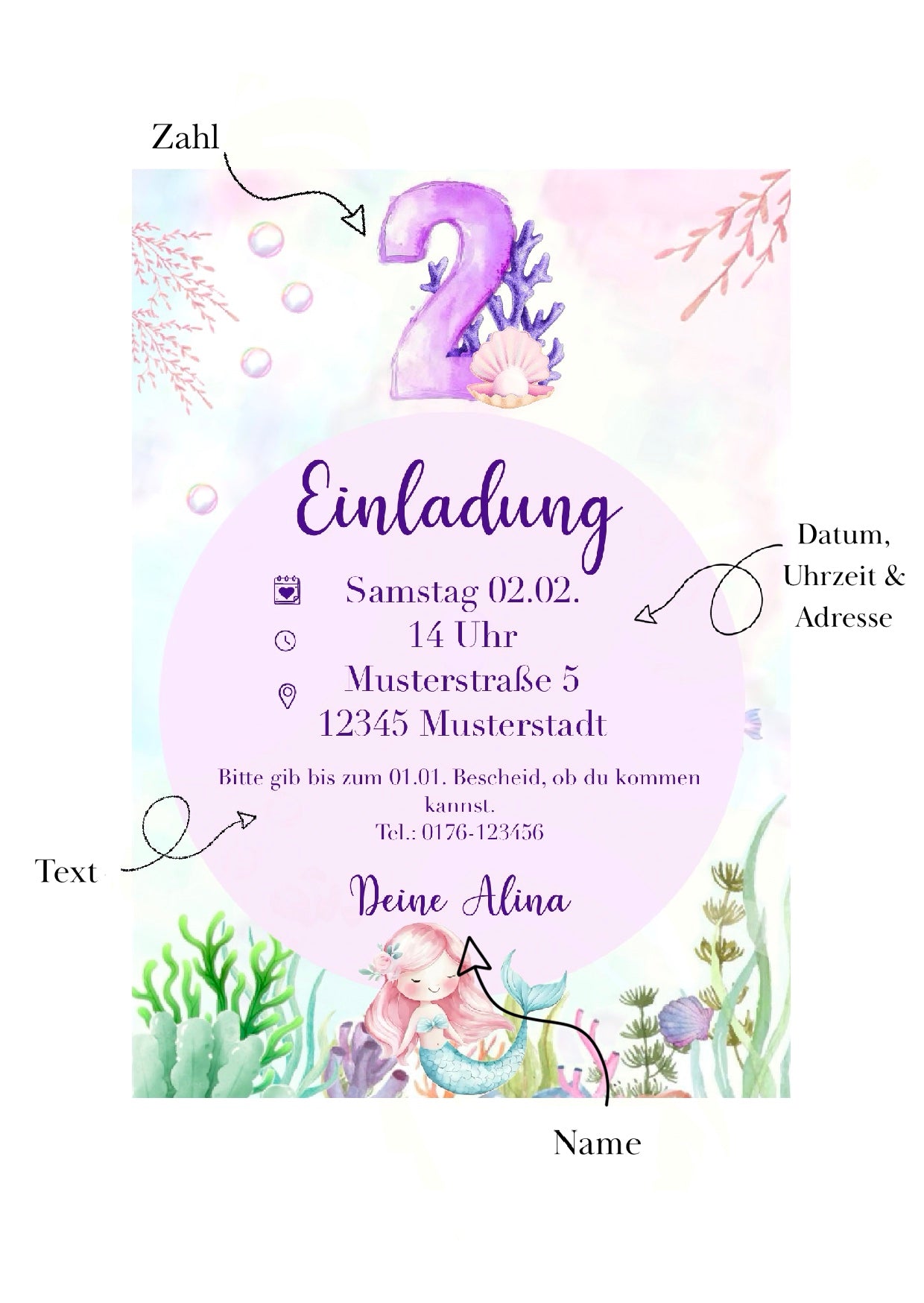 Personalisierte Geburtstagseinladung „Meerjungfrau“ - digitaler Download