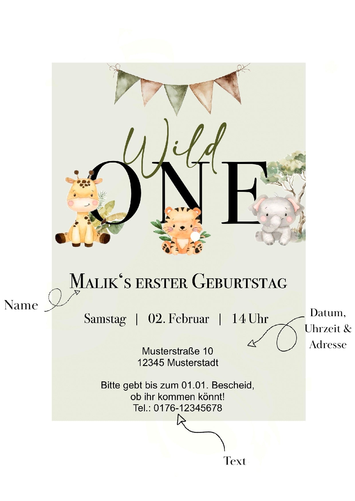 Personalisierte Geburtstagseinladung „Wild One“ - digitaler Download